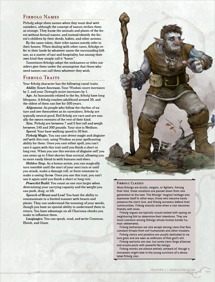 Ich kenn jetzt die Firbolg-Werte nicht. In 5E kommt es bei den Rassen ja in 1. Linie auf die Attributswerte an, und alles andere ist meistens eher marginal.